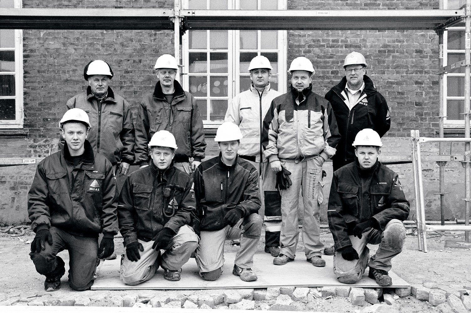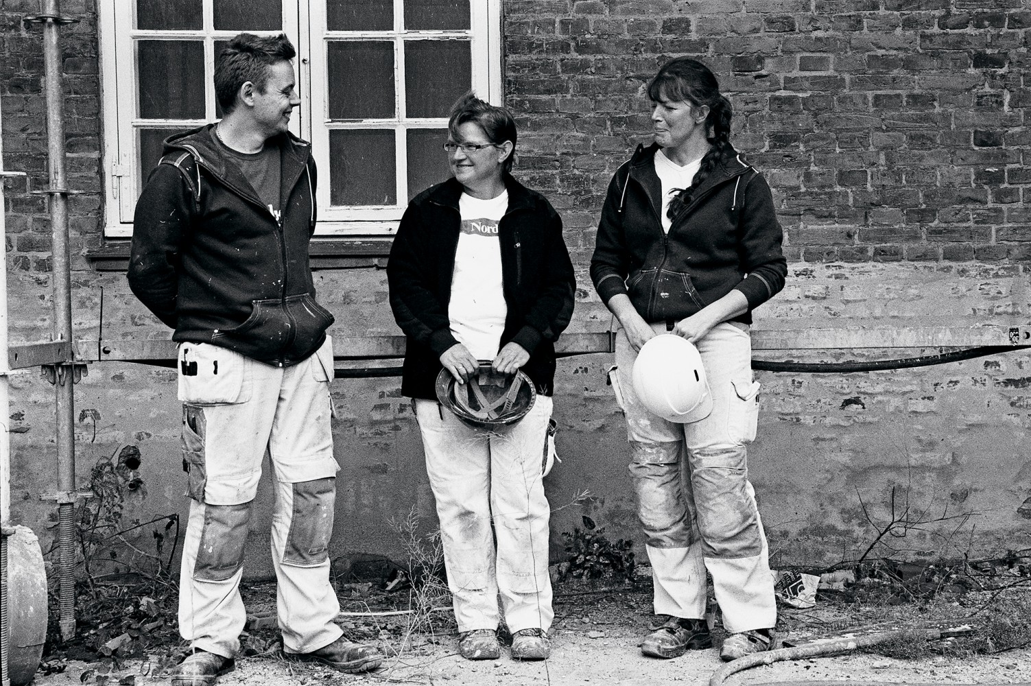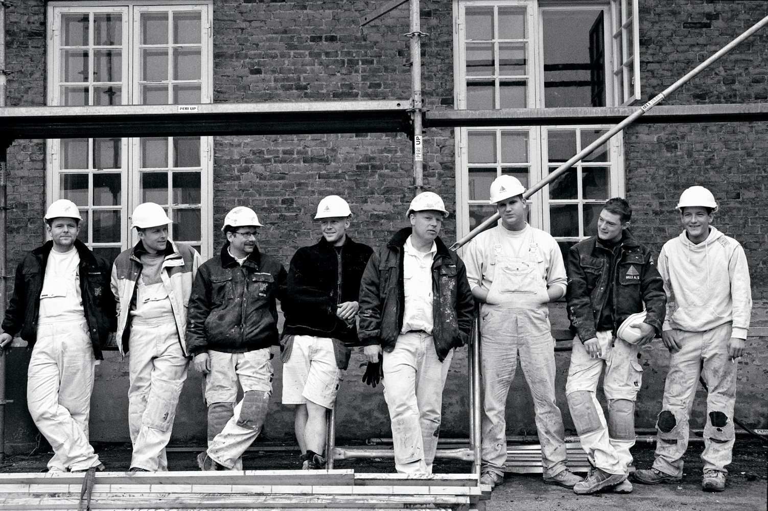 Opstillingsfotograferingen gav anledning til megen munter indforståethed. Det viste sig at give mening. Som en af tømrerne sagde: ”Det er også en måde at lave sammenhold på. Vi står sammen og viser, at sådan gør vi.”