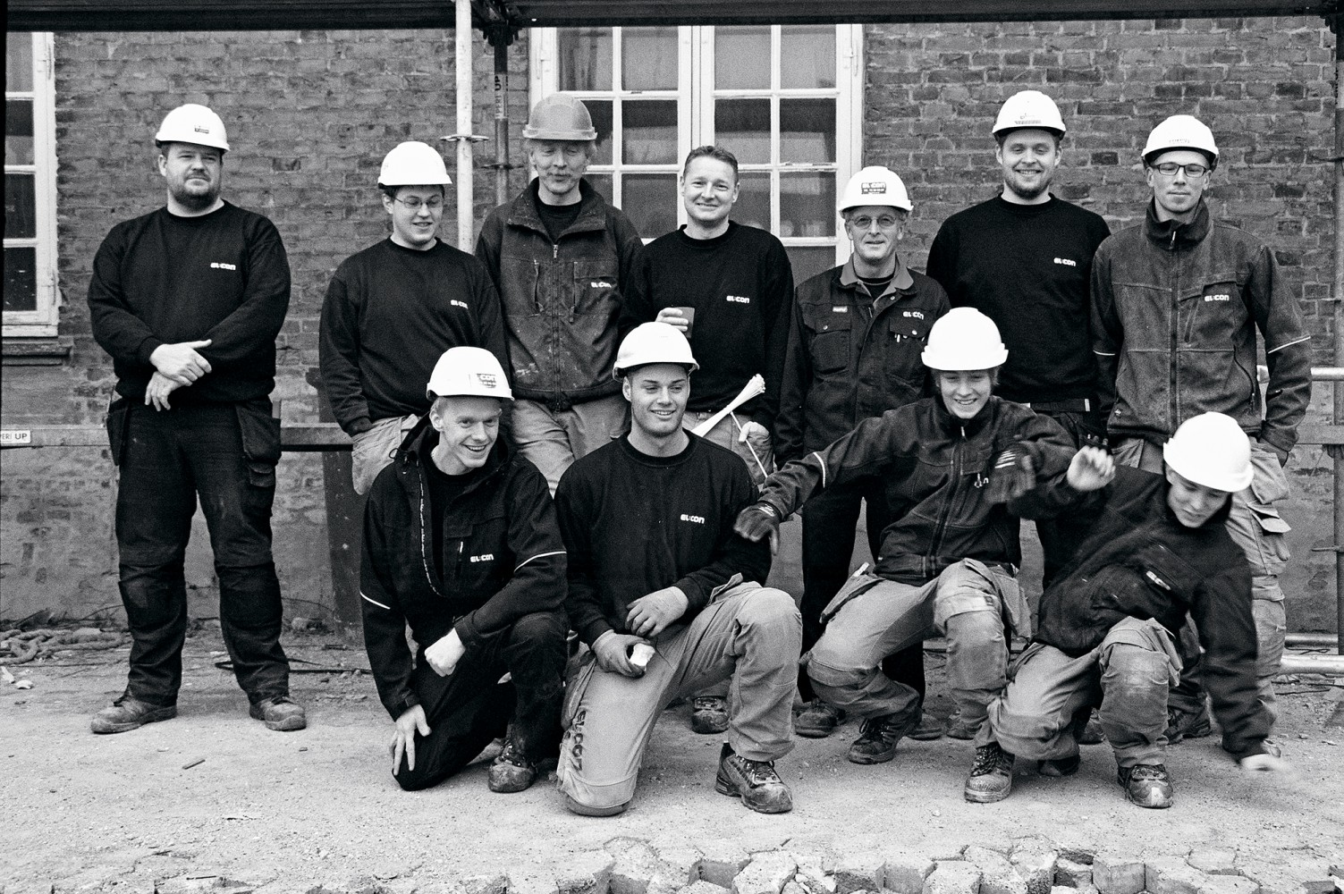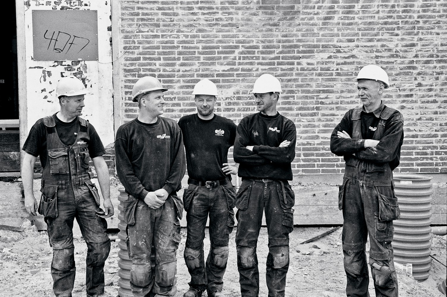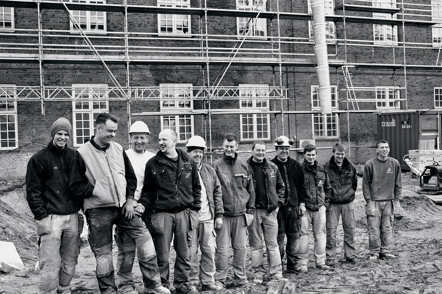 Opstillingsfotograferingen gav anledning til megen munter indforståethed. Det viste sig at give mening. Som en af tømrerne sagde: ”Det er også en måde at lave sammenhold på. Vi står sammen og viser, at sådan gør vi.”
