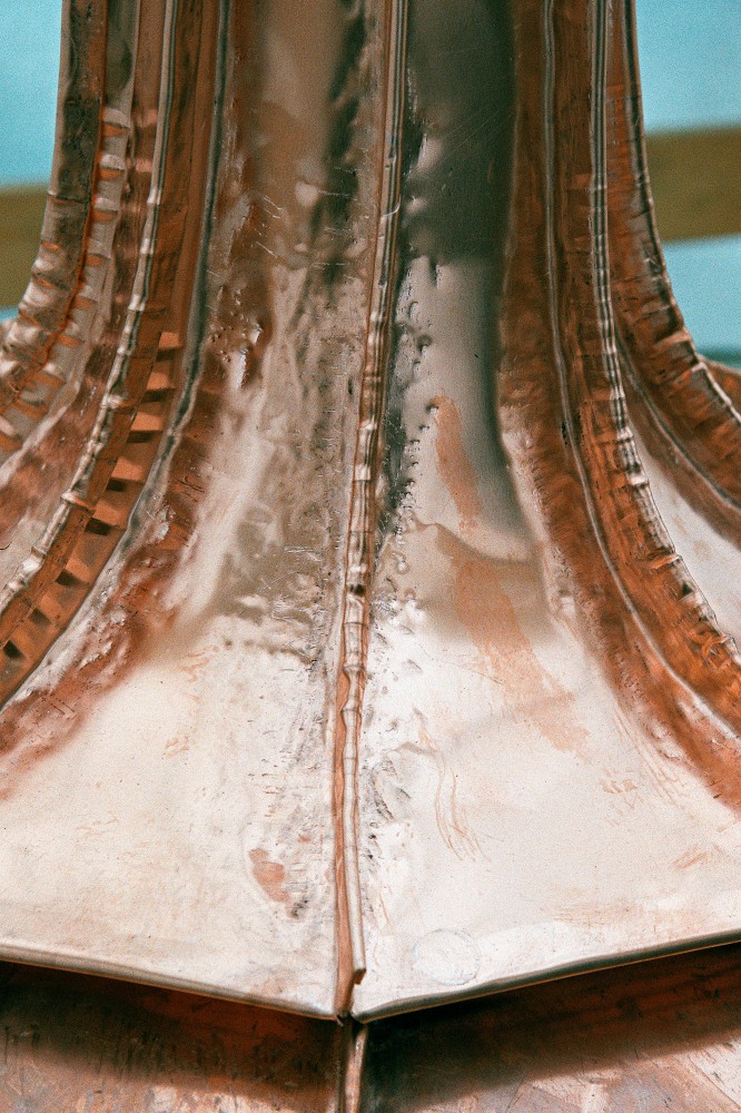 ”Det er et gammelt håndværk, så gammelt som blikkenslageren,” siger Evan Friis, der har arbejdet med kobber i 25 år og har lært det i Sverige. Han er en af de sidste, der kan håndværket i ordets egentlige betydning – håndens virke.