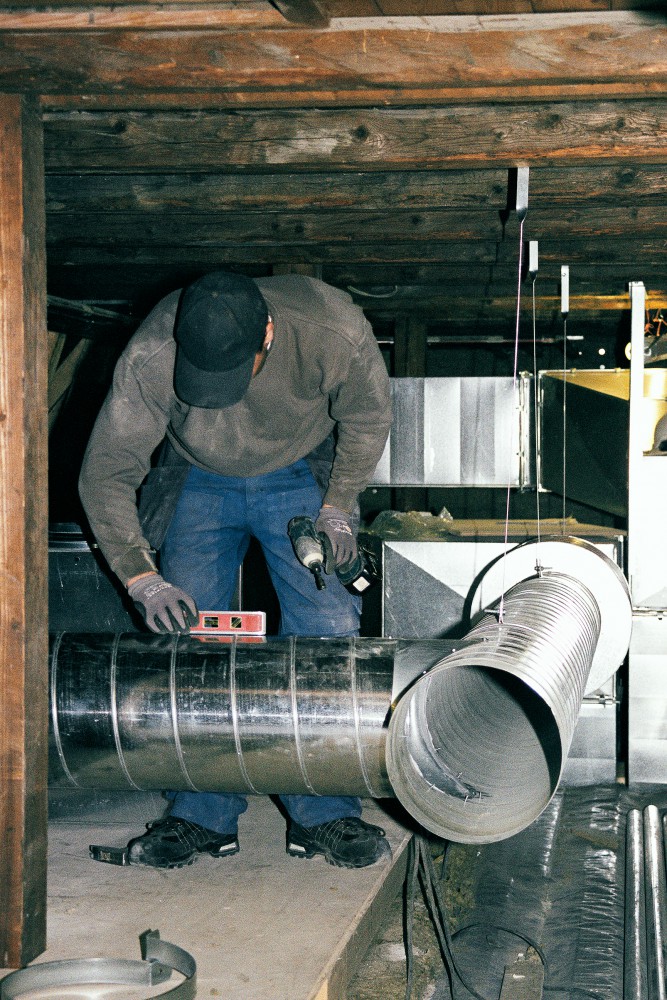 En dag er det ventilationsmontøren Jakob Simonsen, der er oppe på loftet. Han ser på de gamle trækonstruktioner: ”Det er en fryd at se, hvordan det er skudt ind i hinanden. Træet passer sammen. Det er ikke bare klampet sammen med et beslag. Der er brugt tid med stemmejern og hammer.”