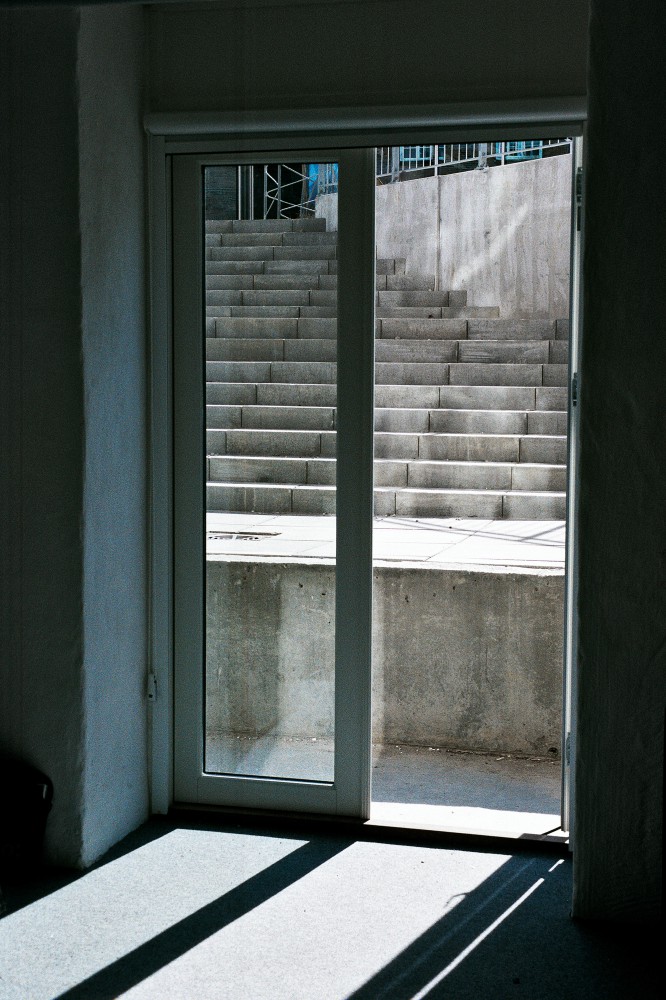 ”Af funktionshensyn blev kælderen lavet om til en stueetage forstået på den måde, at tilgangen dertil er med trapper og med adgangen ud til det fri. Så de rum, der har funktioner med dagslys, hænger sammen som en etage, der kunne ligge på jorden.” (Arkitekt Finn Larsen)