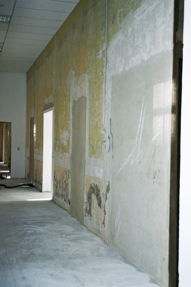 ”Væggene i stueetagen skal ikke males. Ved at lade dem stå, som de er, fortæller der på samme tid om alle de perioder, der har været. Når du afdækker de forskellige malerperioder, ser man også de forskellige farver, de forskellige overflader, de forskellige teksturer. Så kan du se, hvordan bygningen har levet før. Her er det tilfældigt, hvordan de bliver afdækket. Det er håndværkeren, der med sin afrensning giver de forskellige overflader. Han er sådan set kunstneren. Det er ikke en del af funktionen, men del af fortælleværdien, så eftertiden også kan aflæse bygningshistorie.” (Arkitekt Finn Larsen)