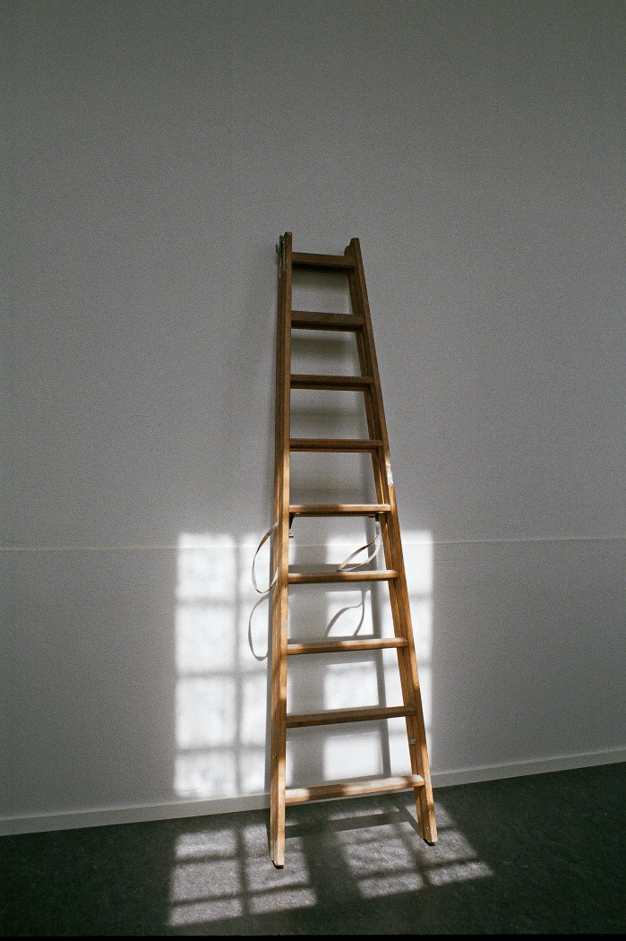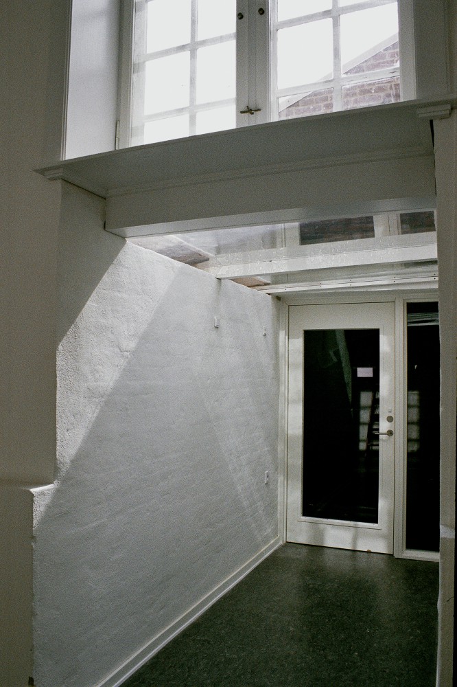 Så længe muren står som murværk, kan man se de mange murstens farver. ”Men det skal ikke stå som murværk, og derfor skal det ikke være så præcist.” En dag har maleren været der og slettet alle forskelle med den hvide farve. Herefter gør skyggerne den eneste forskel.